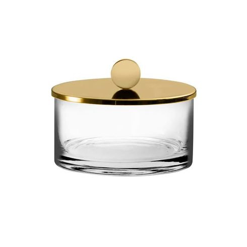 Caixinha redonda pequena inox tampa dourada 12x8,5cm Riva