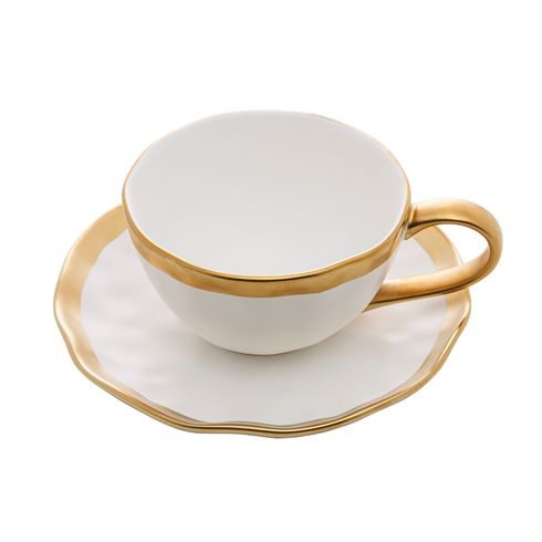 Xícara chá com pires filete dourado Elisa 185ml 15x8cm Tramontina